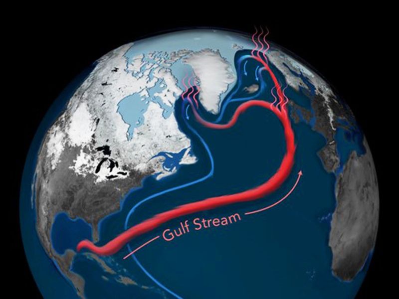 Повышение глобальной температуры и таяние ледников Гренландии ослабляет вертикальное смешивание вод: более теплая и менее соленая вода хуже опускается и меньше перемешивается с глубокими водами. Процесс ослабляет Amoc, в результате чего на север течет меньше теплой воды — и там становится холоднее. Наблюдения последних пяти-десяти лет уже фиксируют ухудшение перемешивания вод в северных морях.