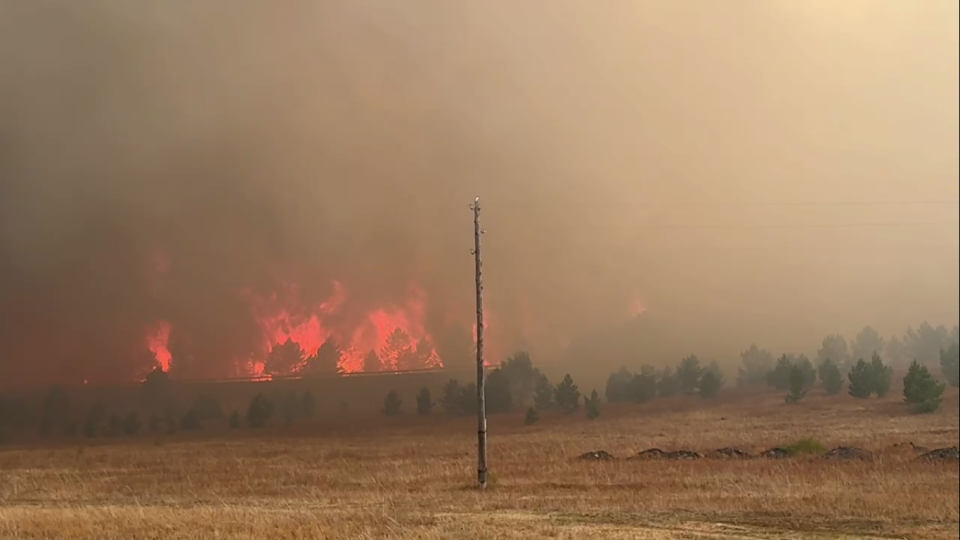 Работу пожарных и добровольцев осложняет сухая и ветреная погода.