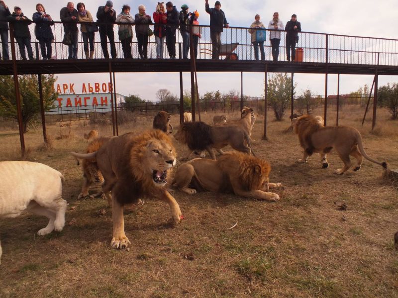 Зоологи считают, что одному взрослому льву нужно как минимум 67 км2 территории, а охотничьи участки самцов могут достигать 230 км2. Это в сотни раз больше, чем территория сафари в «Тайгане».