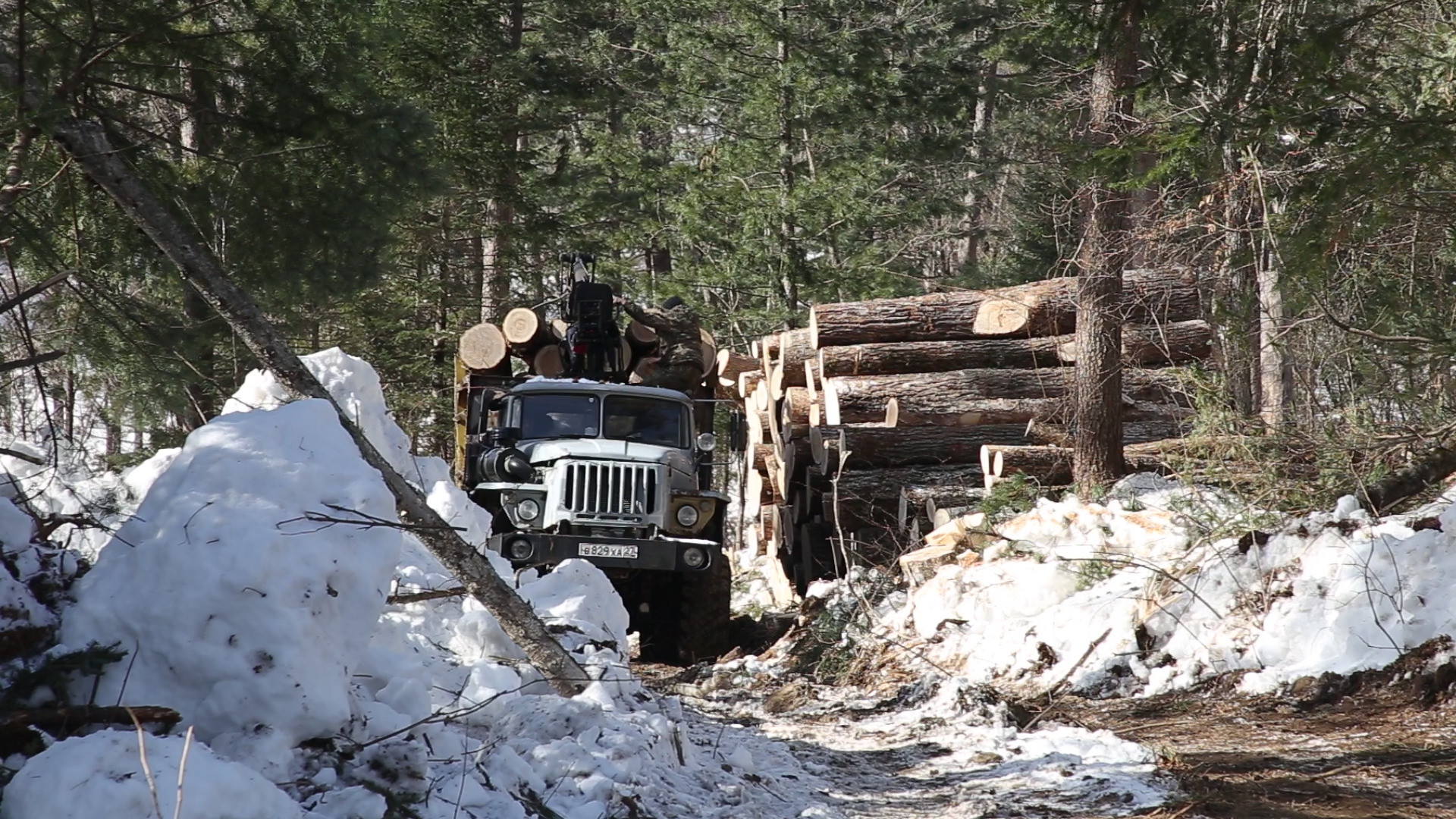 Лесорубы в Бирском заказнике. Кадр из видео Александры Сорочинской