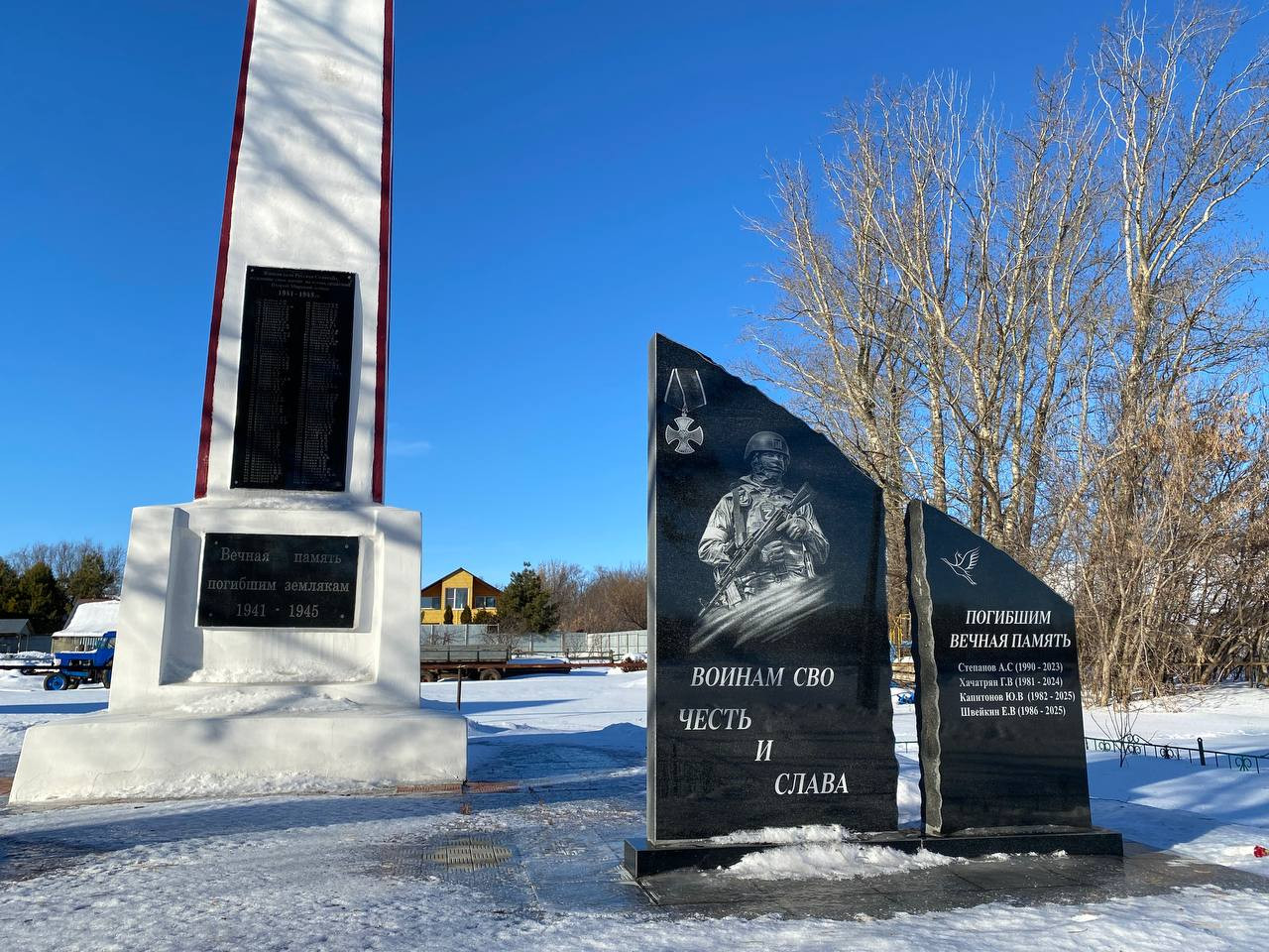 Четыре улицы в селе Русская Селитьба сплошь уставлены прижимистыми деревенскими домами. Только двухэтажная школа в самом центре возвышается над ними. За зеленой оградой расположился мемориал погибшим в Великой Отечественной войне. В мае 2025 года здесь появилась еще одна траурная плита — с нарисованным солдатом и надписью «Воинам СВО честь и слава». На черном камне выведены четыре фамилии. Пятую добавить еще не успели: последнего погибшего привезли в январе.