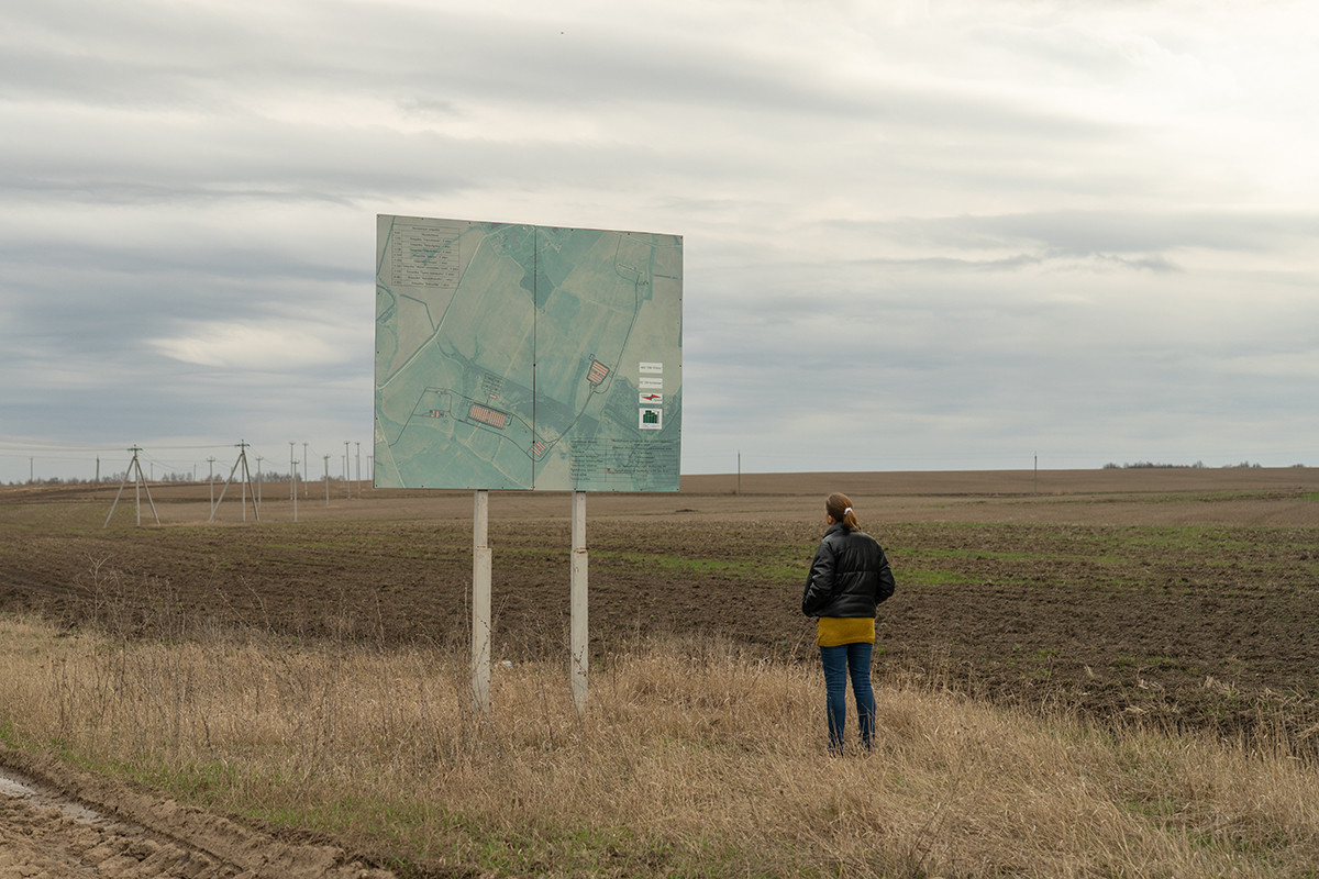 У линии горизонта виднеется серый забор, где начинается свинокомплекс. Перед ним — развороченная трактором земля. Она тянется долго, пока мы подъезжаем к нужному полю. Сюда Надежда приезжала год назад, чтобы заснять, как на землю сливают зловонные отходы производства.