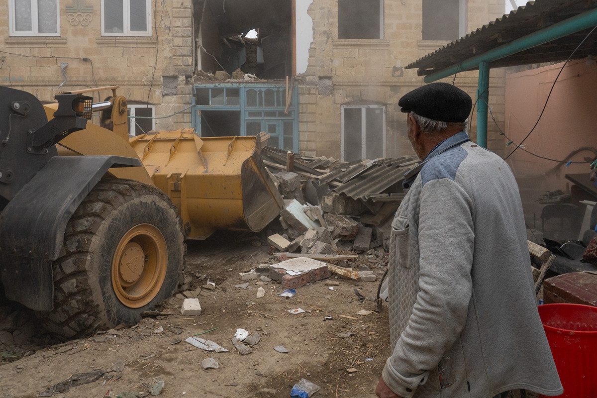 Улица Шоссейная в Мамедкале разрушена не меньше Заречной. Люди порой указывают на пустоты, рассказывая о своих домах. Сложно поверить, что на месте голой земли пару дней назад что-то было. Но местные повторяют: это правда, они здесь жили.