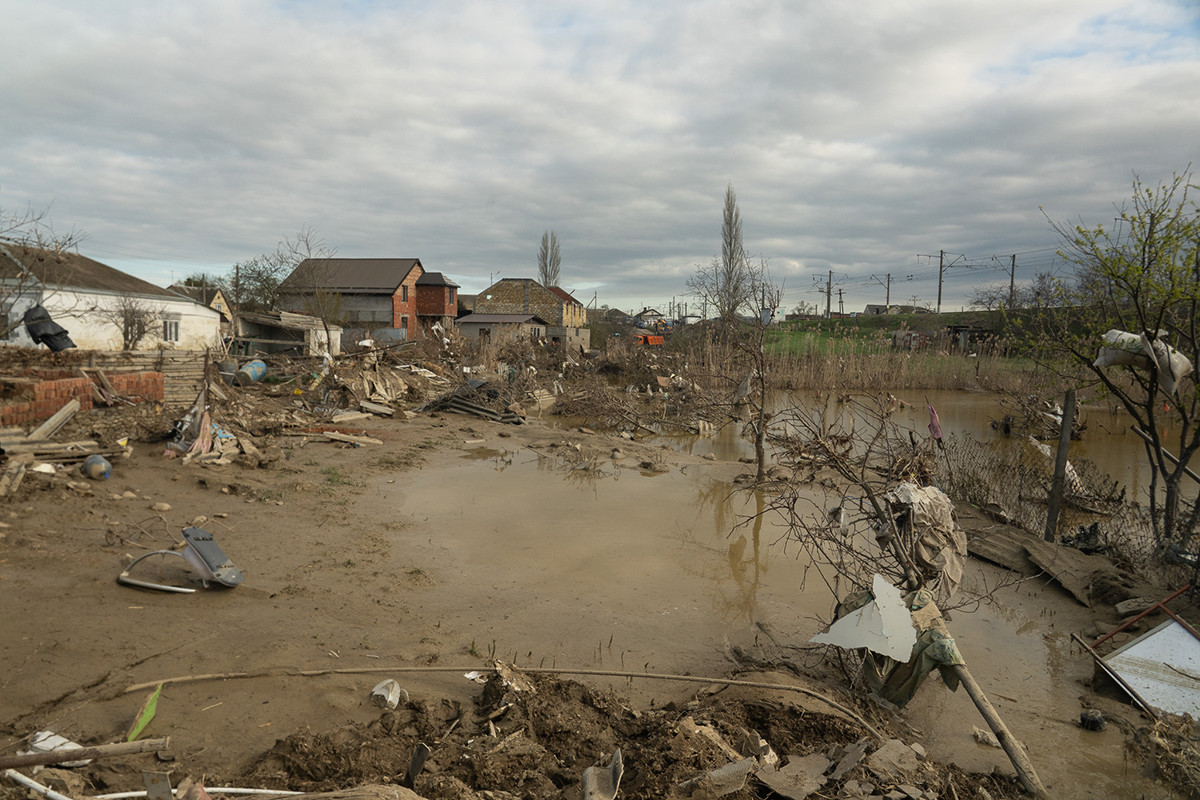 Позже о спасительном бугорке мне расскажут много раз, а пока я смотрю на разрушенные одноэтажки: у одних потоком снесло часть стен, у других — сорвало крыши, некоторые превратились в руины. То здесь, то там суетятся люди, пытаясь разобрать отсыревшие груды мебели.