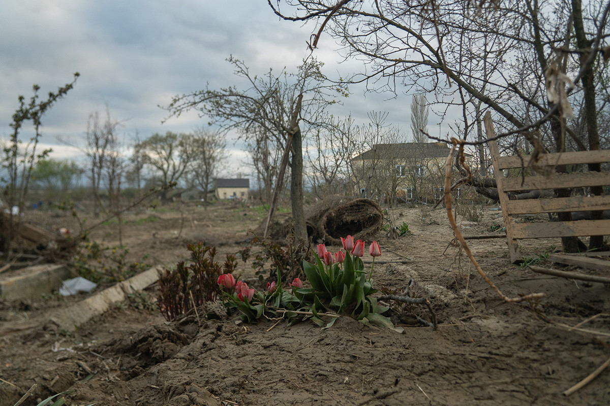 После прощания женщина окликает уходящих волонтеров: «Знаете, у меня такие цветы красивые были, выращивала долго. Тоже пропали». Снова плачет.