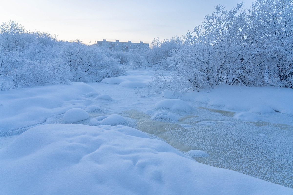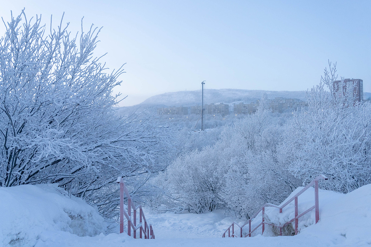 Обволакивающие Мурманск темные сопки припорошены снегом. Небо едва светлое, и Кольский проспект — одна из главных магистралей — в полдень кажется тихим и сонным, как и весь город.
